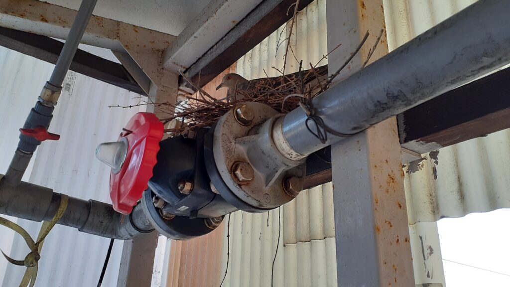 今朝、会社内の100番積込場にて、鳩が巣を作っているのをドライバーのYさんが発見しました。