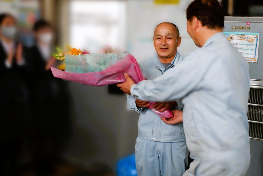 2026.04.20 トピックス 退職セレモニー 2026年3月31日 退職セレモニーを開催しました。 45年間、北陸化成工業所グループで活躍していただいた大先輩が退職されることになりました。 ささやかではありますが、皆で感謝の気持ちをお伝えしました。 本当に長い間、支えてくださってありがとうございました。 これからはこれまでどおりお元気で、お孫さん、ご家族と楽しい時間をお過ごしください。 前の記事へ 一覧へ戻る